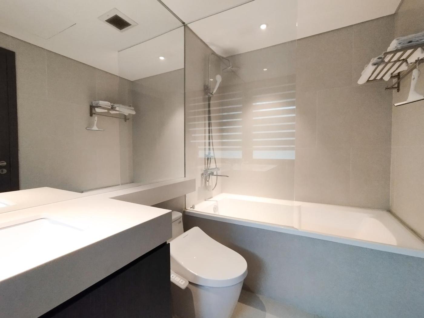 One-Bedroom Apartment. The air-conditioned apartment features 1 bedroom, 1 bathroom and a kitchen. The apartments kitchen is available for cooking and storing food. Featuring a balcony, this apartment also provides a washing machine and a flat-screen TV. The unit offers 1 bed. ;